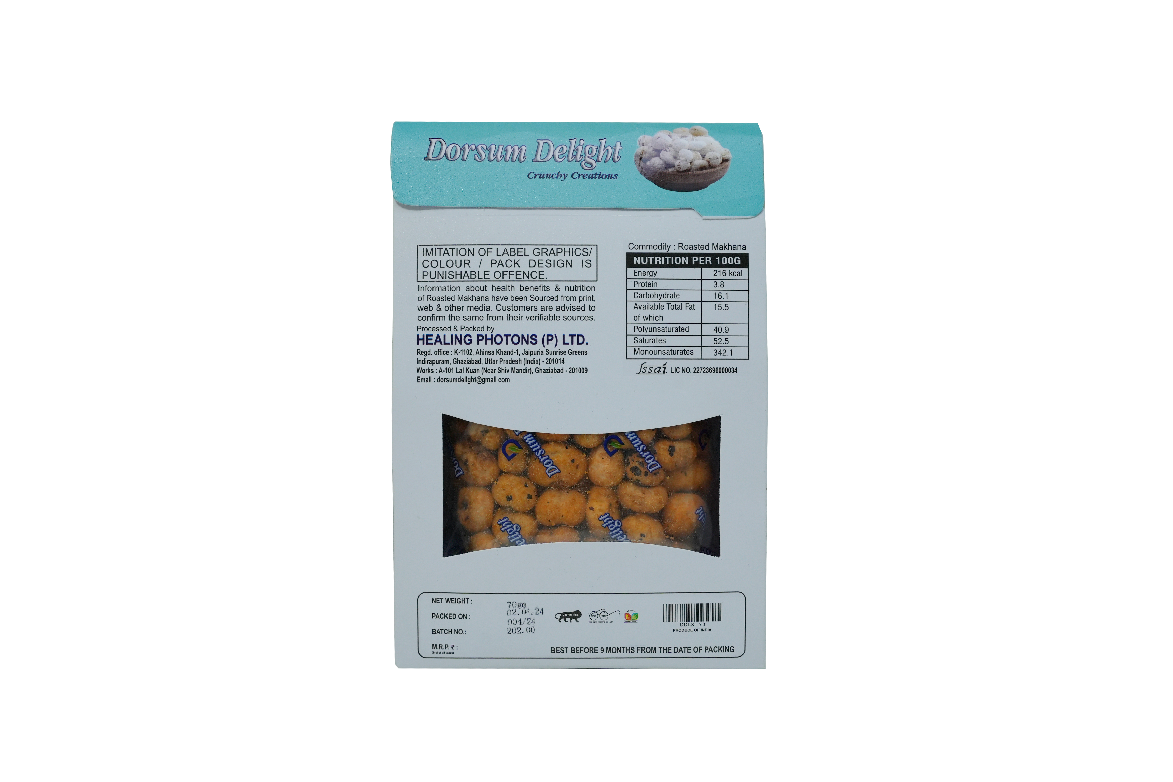 Each bite of our roasted Makhana boasts an impeccable crunchiness and a delightful flavor profile that tantalizes your taste buds with every nibble. Despite their flavorful coating, Dorsum’s makhanas remain low in cholesterol, sodium, and saturated fats, making them a heart-healthy snack option.