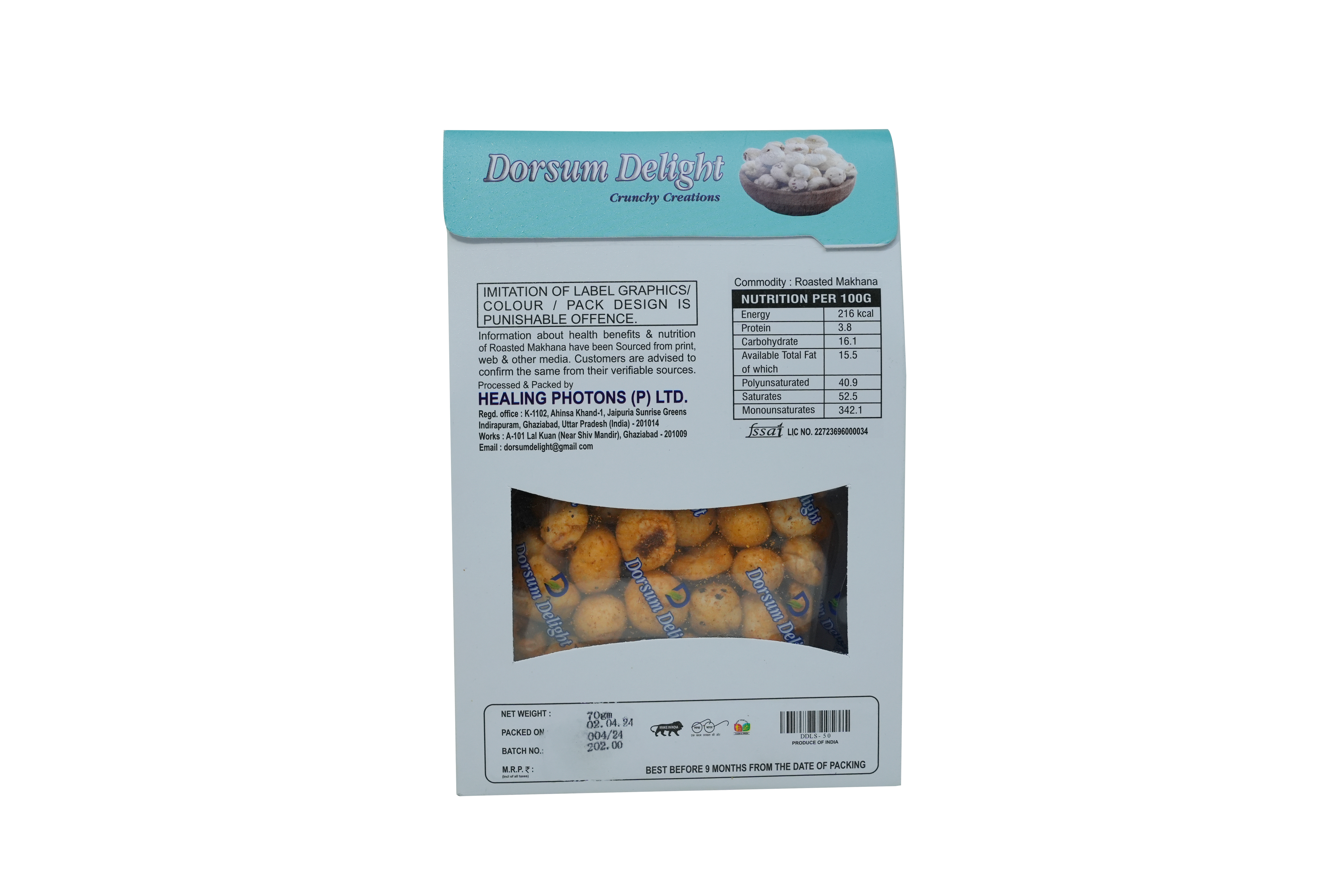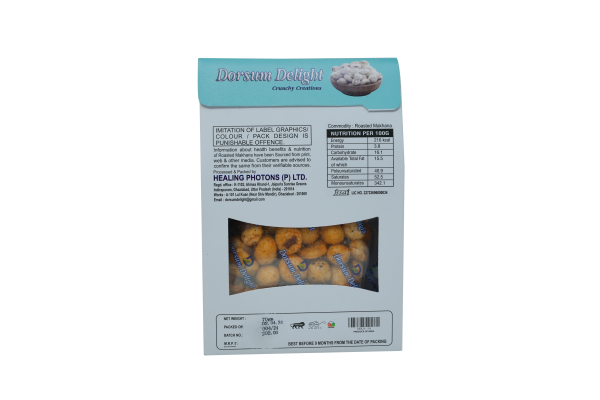 Each bite of our roasted Makhana boasts an impeccable crunchiness and a delightful flavor profile that tantalizes your taste buds with every nibble. Despite their flavorful coating, Dorsum’s makhanas remain low in cholesterol, sodium, and saturated fats, making them a heart-healthy snack option.